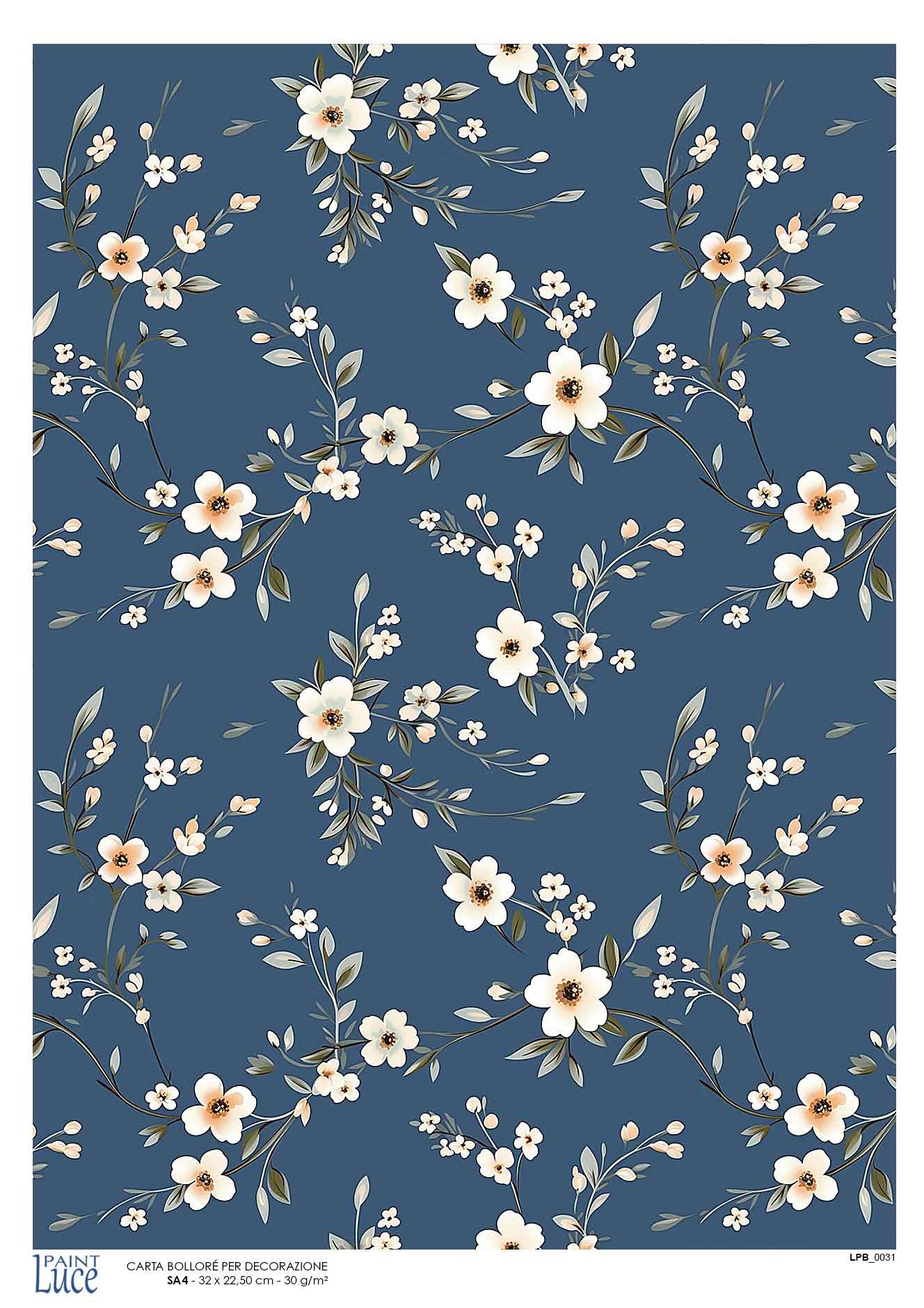 Carta Decoupage Bollorè “FIORELLINI BASE BLU” 297×210 mm