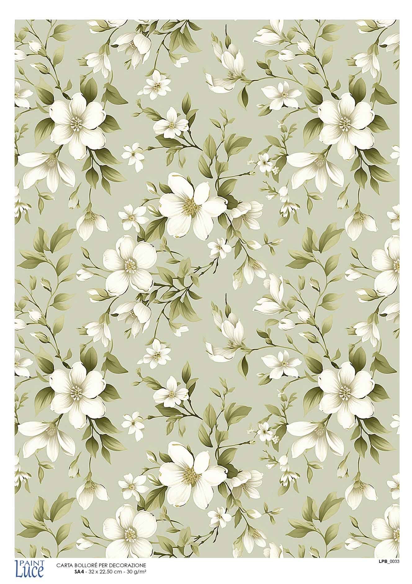 Carta Decoupage Bollorè “FIORELLINI BASE VERDE CHIARO” 297×210 mm