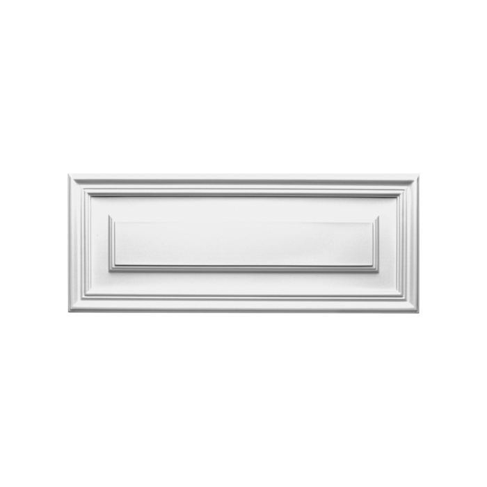 Il pannello decorativo in polistirene D504 é di forma rettangolare, può essere utilizzato sia per arricchire una porta che per creare eleganti boiserie