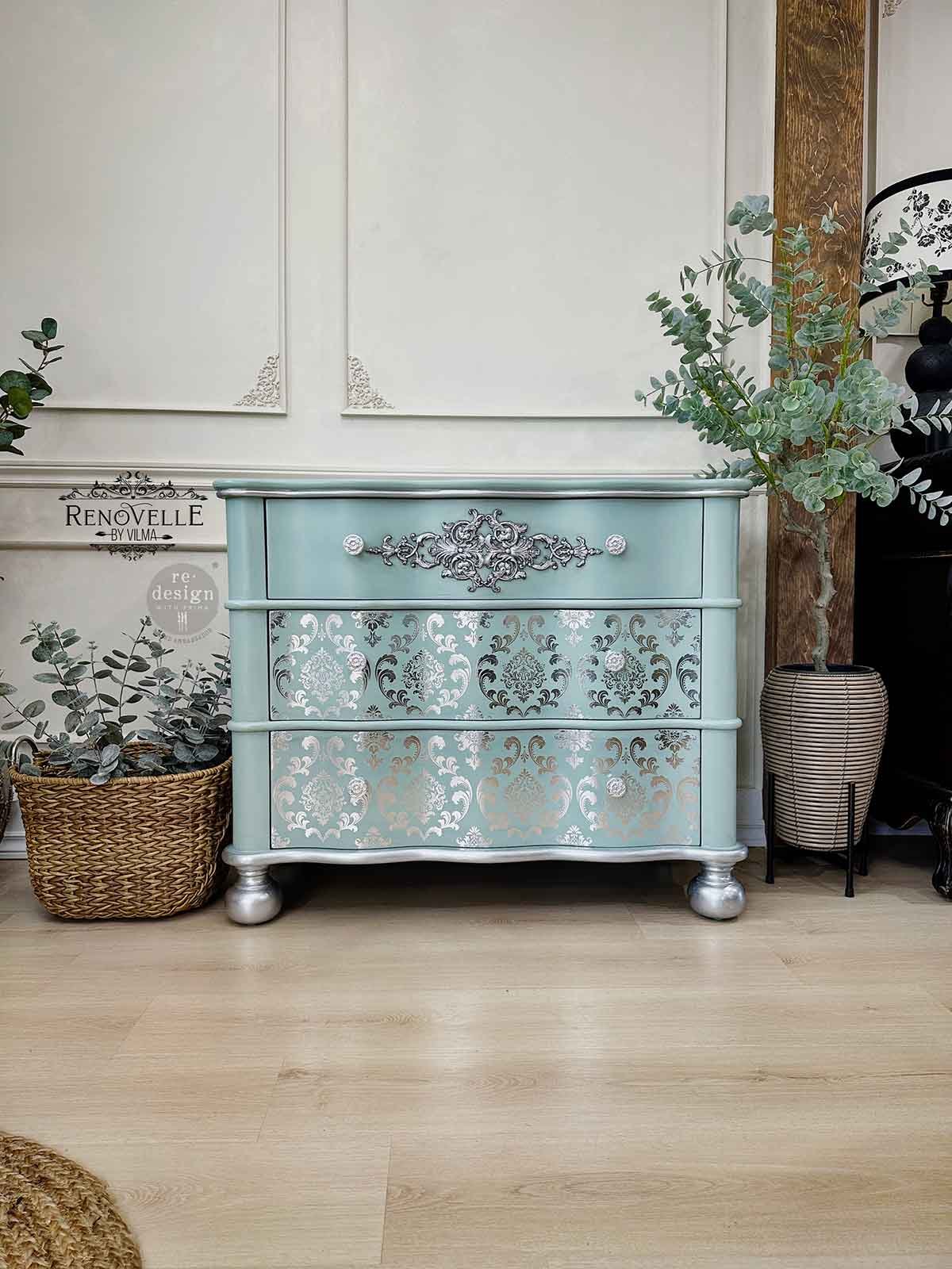 La fantasia damasco di tendenza? Assolutamente, ma con l’inconfondibile tocco di glam di Kacha! Il “Silver House of Damask” Décor Transfer prende il classico ed elegante motivo Damask e lo eleva con una splendida foil d’argento che irradia il lusso. Perfetto per chi ama mescolare lo stile tradizionale con un tocco moderno, questo transfer aggiunge una bellezza audace e riflessiva a qualsiasi pezzo. Che tu stia aggiornando una credenza chic o aggiungendo un tocco a un muro di accento, questo design si trasforma in una decorazione straordinaria, infondendo il tuo spazio con una lucentezza glamour e in argento che è pura Kacha.